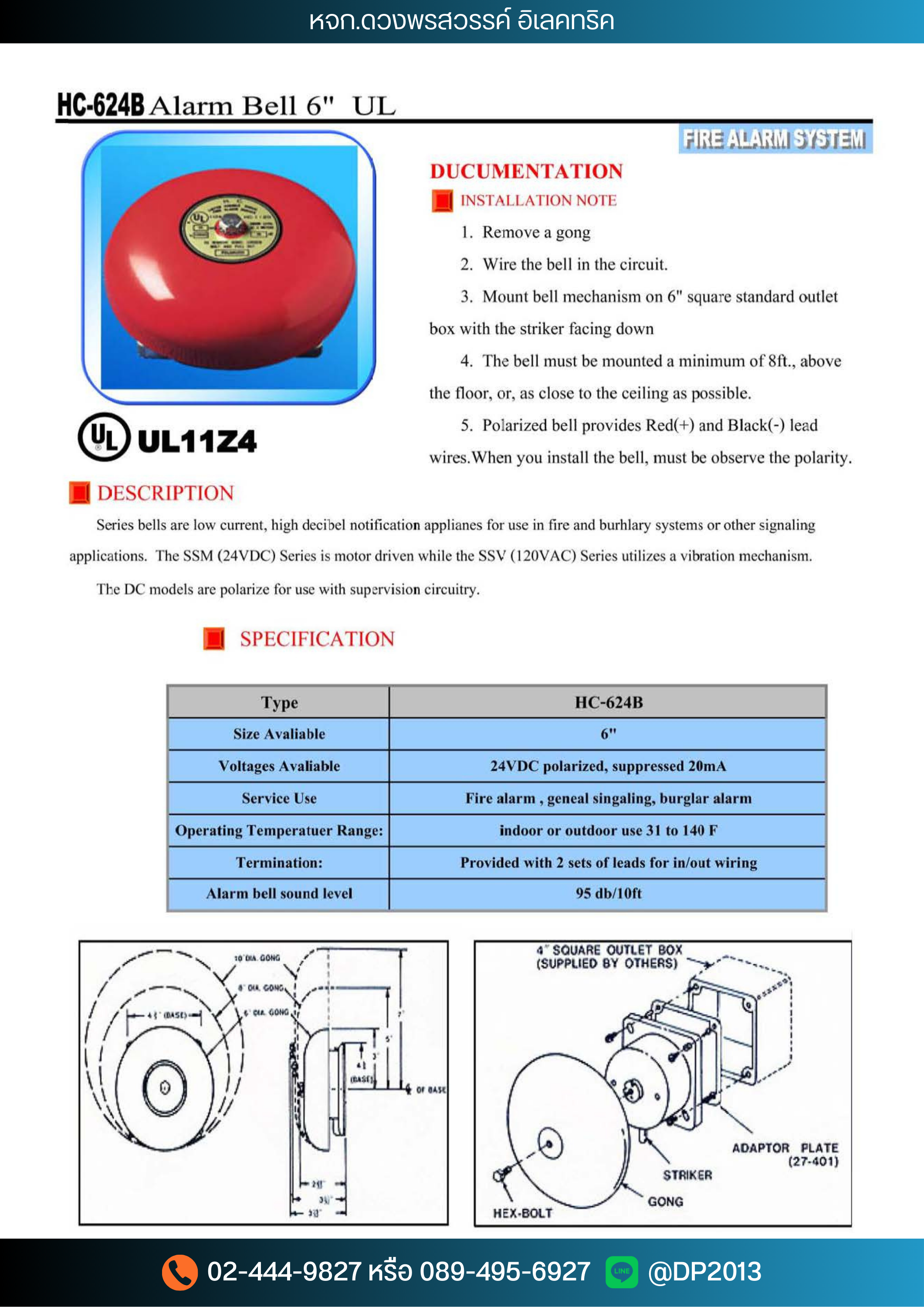 HC-624B คือ กริ่งเตือนไฟไหม้ หรือ กระดิ่งเตือนภัย ขนาด 6 นิ้ว สำหรับใช้ในระบบแจ้งเตือนไฟไหม้ (Fire Alarm System)