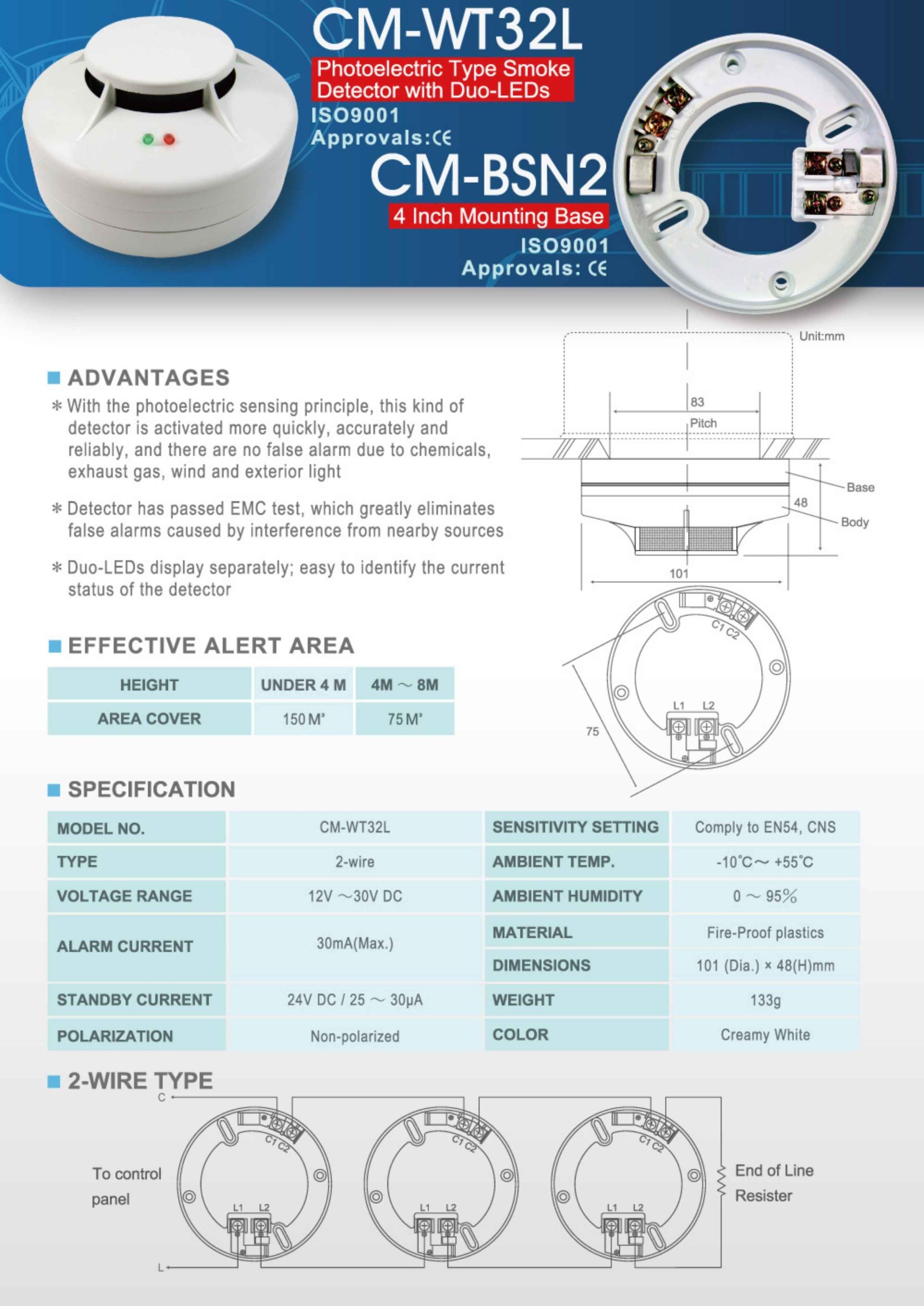 CM-WT32L เป็นเครื่องตรวจจับควันแบบ Photoelectric