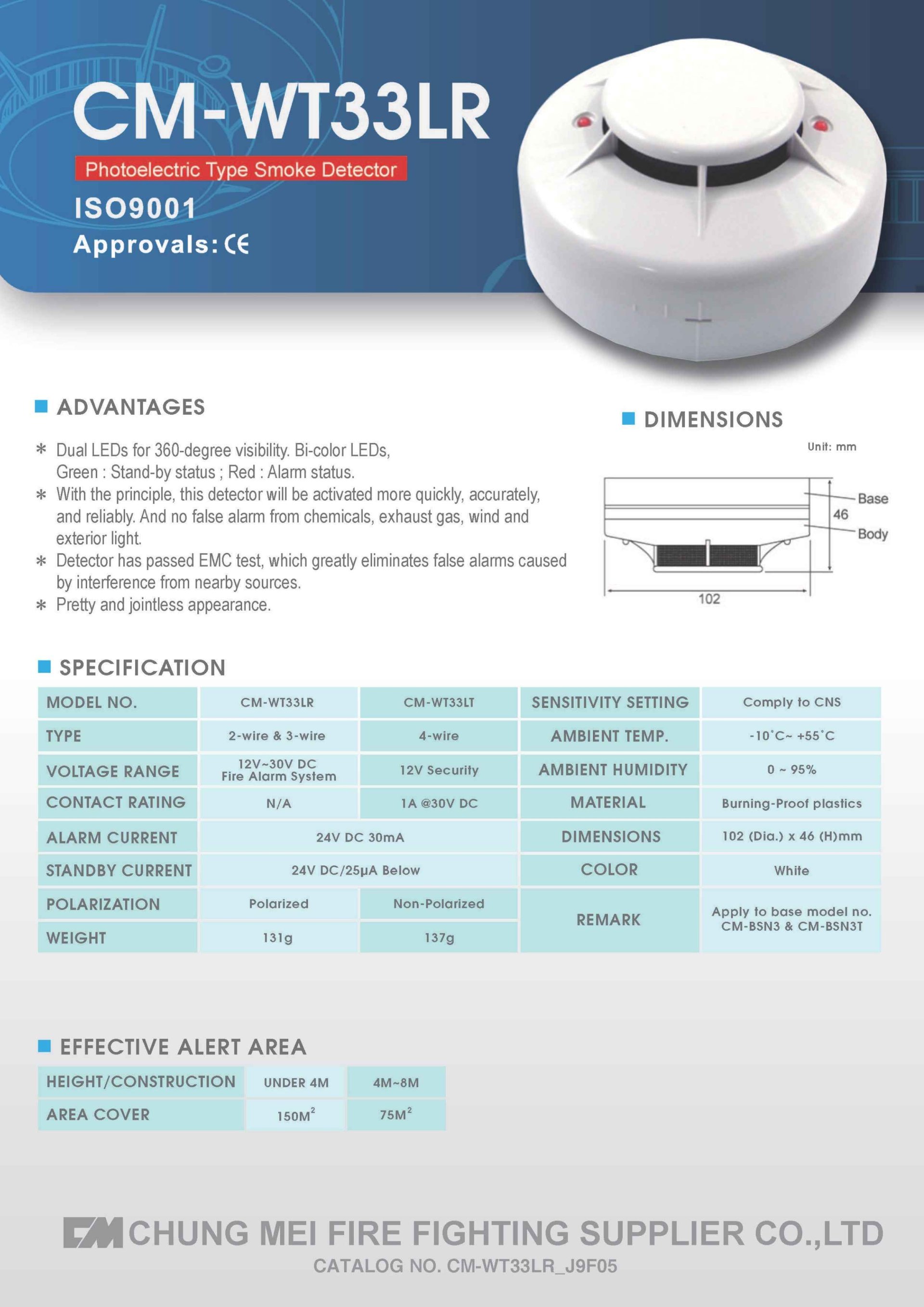 CM-WT33LR เป็นเครื่องตรวจจับควัน (Smoke Detector) แบบ Photoelectric