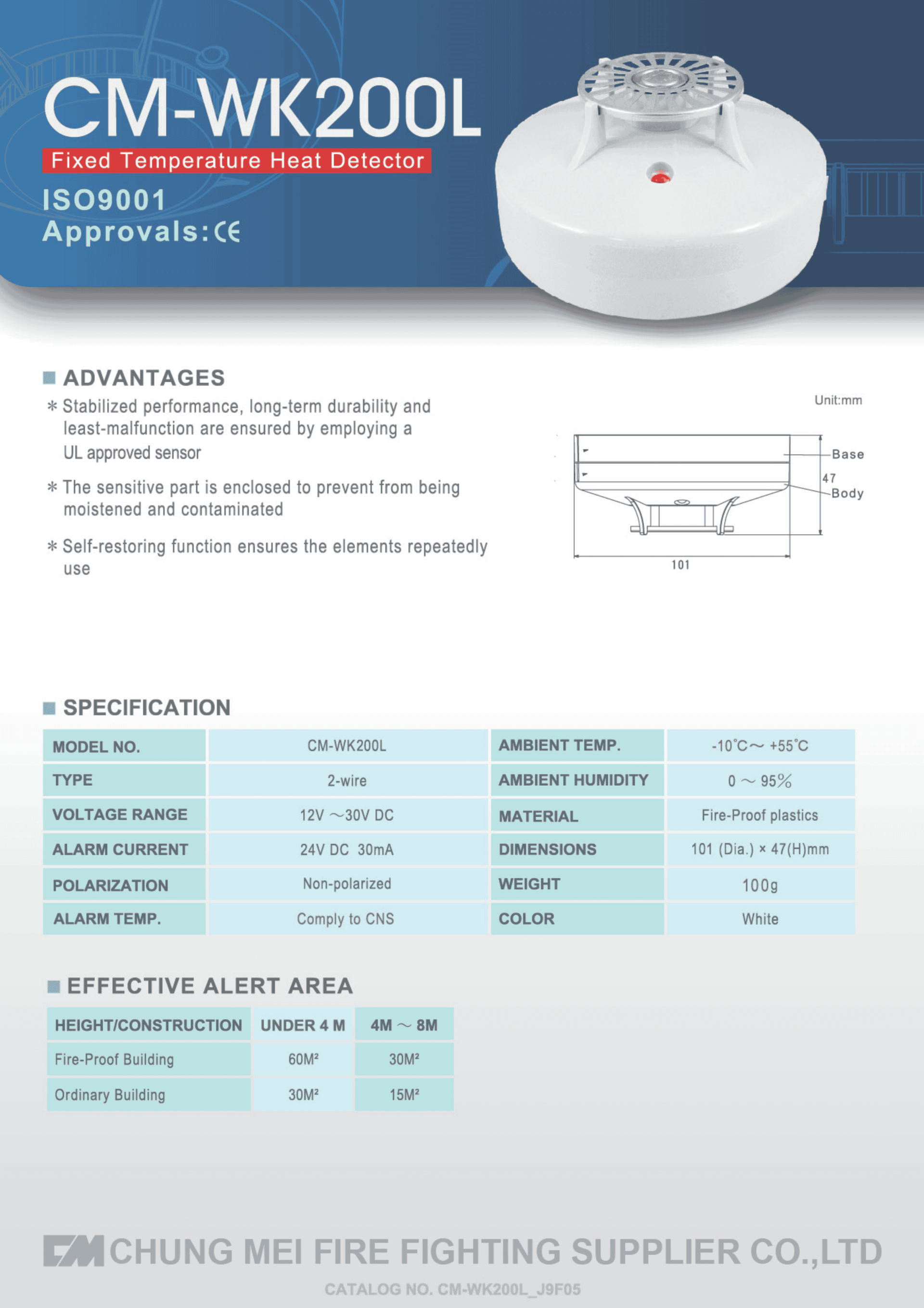 CM-WK200L เป็นเครื่องตรวจจับความร้อนสำหรับระบบแจ้งเหตุเพลิงไหม้ (Fire Alarm System)