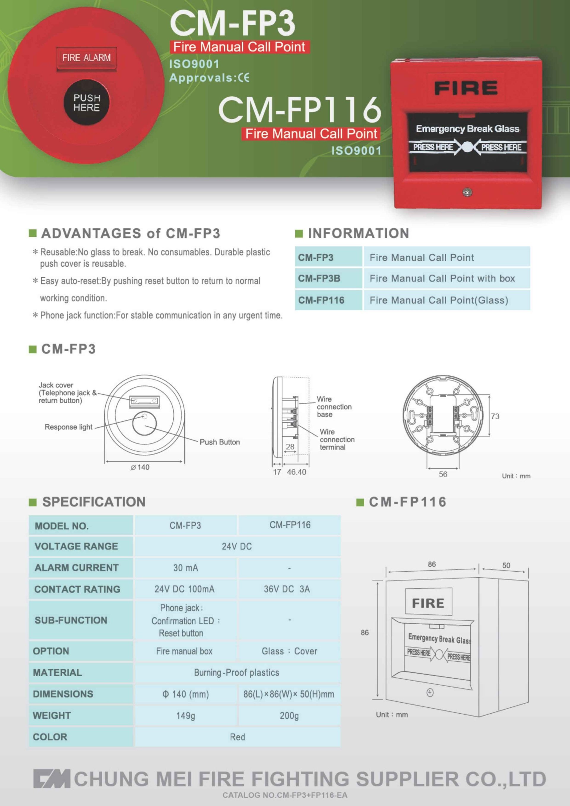CM-FP116 เป็นอุปกรณ์แจ้งเหตุเพลิงไหม้แบบทุบกระจก (Break Glass)