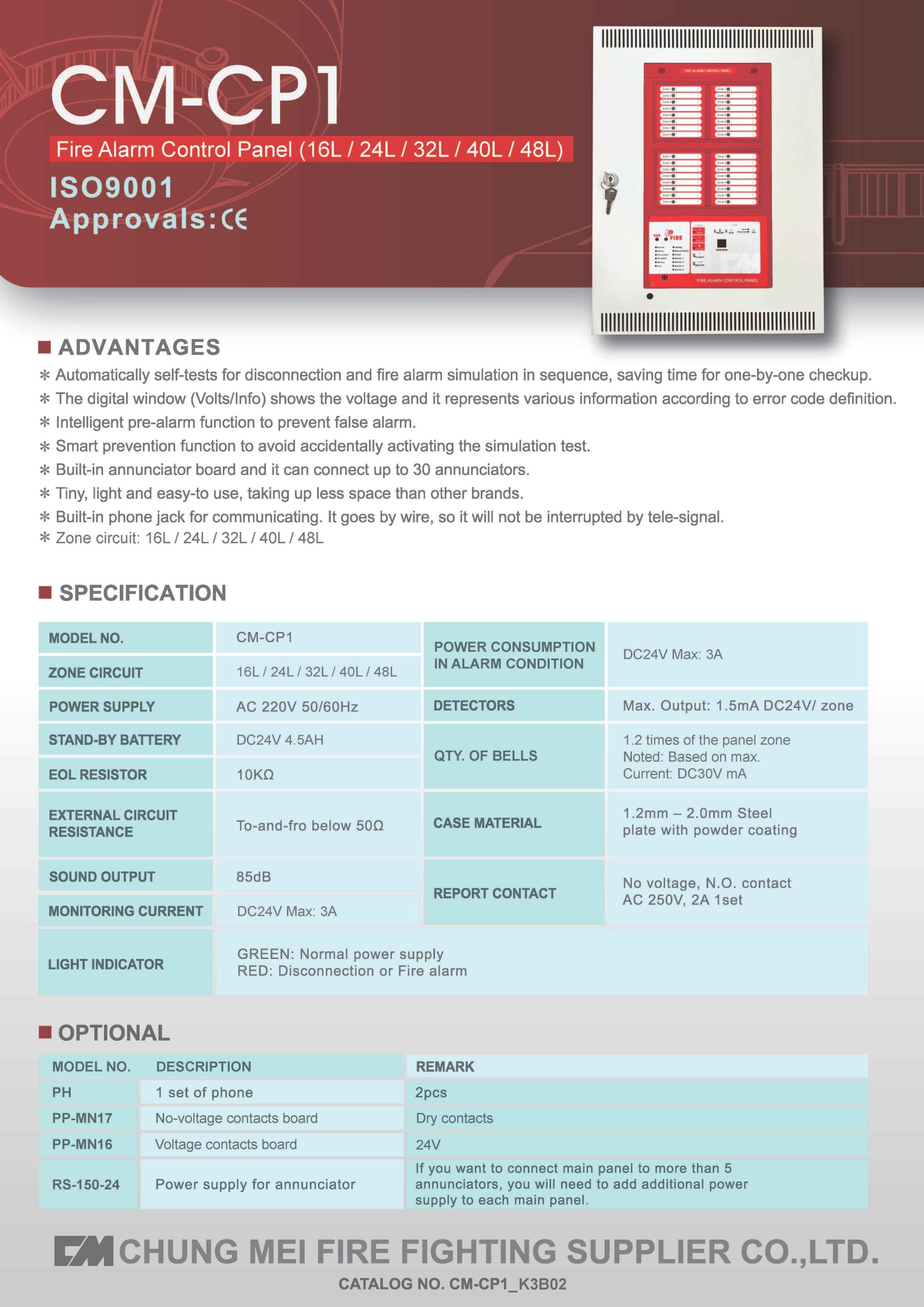 CM-CP1 เป็นตู้ควบคุมสัญญาณแจ้งเหตุเพลิงไหม้ (FACP) แบบ Conventional
